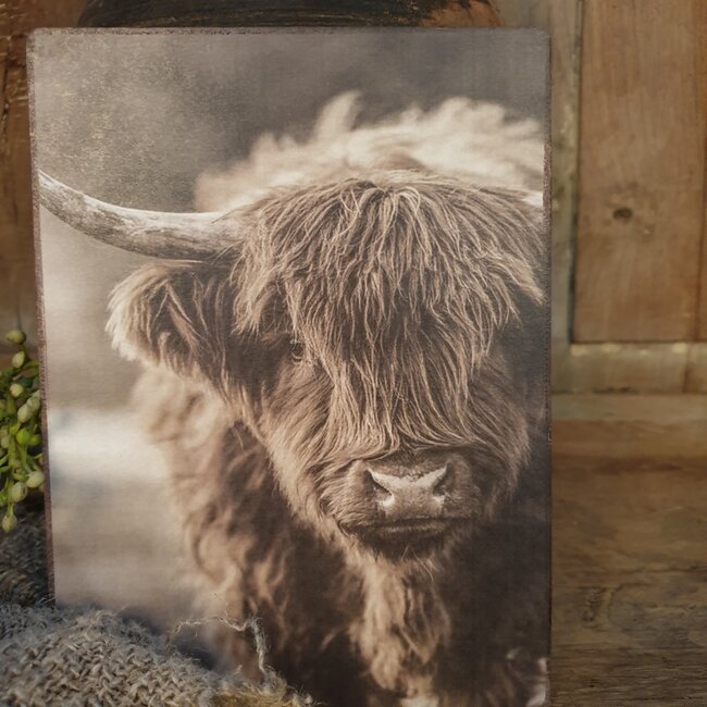 # 891 - afbeelding op hardboard - hooglander - 14 x 19 cm