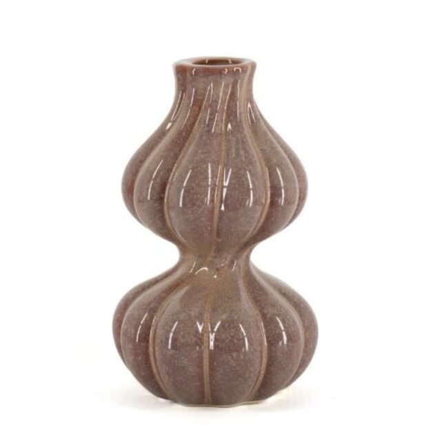 Aardewerk kaarsenstandaard duo bruin - 9x9x15cm