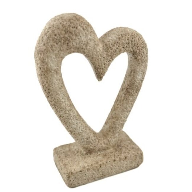 Aardewerk ornament hart beige - 13x6x19,5cm