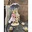 Bruin/roze konijnen gezin "Polyresin" 15 cm