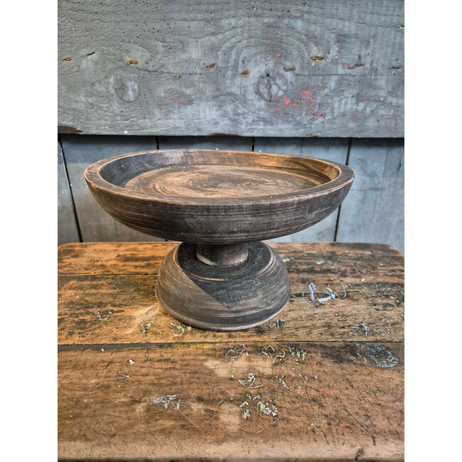 # Donker houten schaal op voet - 25 x 25 x 14 cm