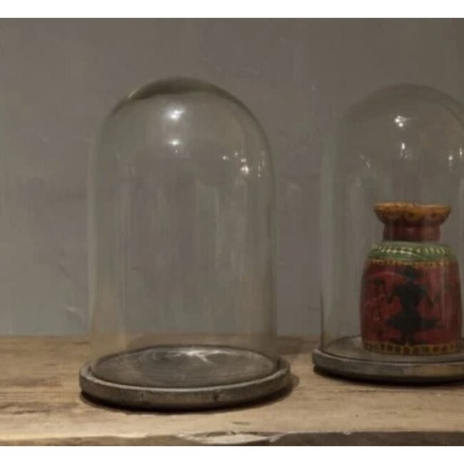 wordt niet verzonden - Glazen stolp op houten plateau - 23 x 23 x 34 cm - grey finish