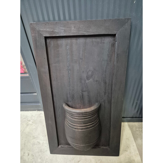 Houten wandpaneel met vaas -donker - ca. 51 x 29 cm