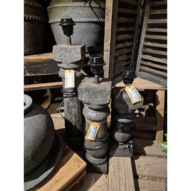 # wordt niet verzonden - Massief houten baluster lampvoet grey, maat M - ca. 10 x 10 x 49 (58cm incl. fitting)