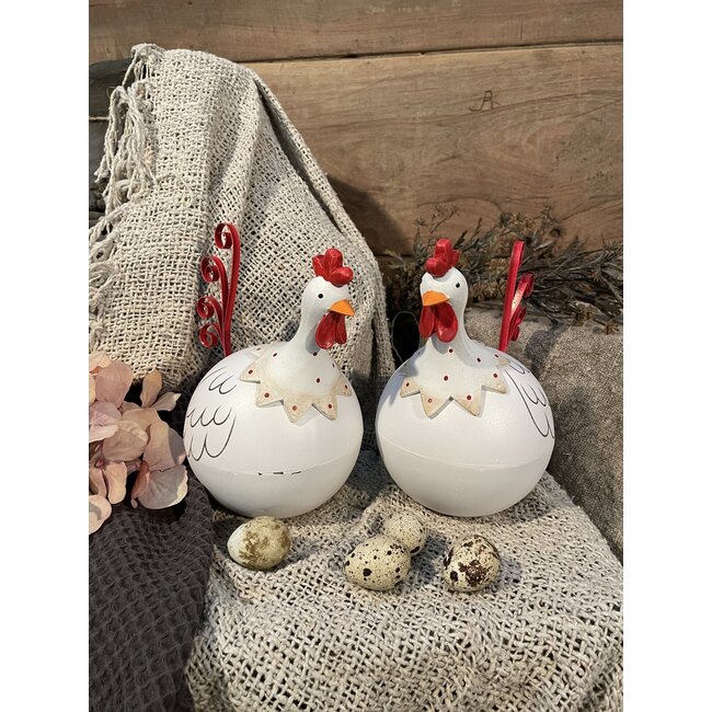 Metalen kip - wit rood - 19x16x11cm - per stuk