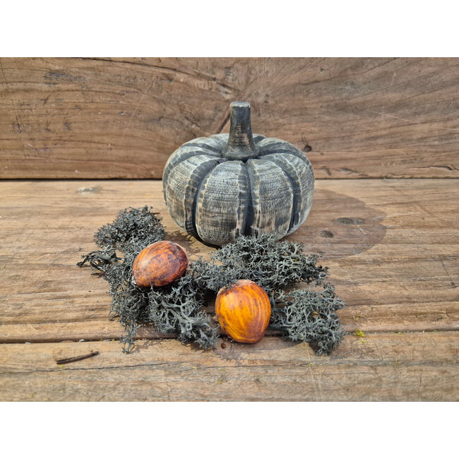 Mix - houten pompoen - plat - ca. 12 x 12 x 10 cm - grijs melee