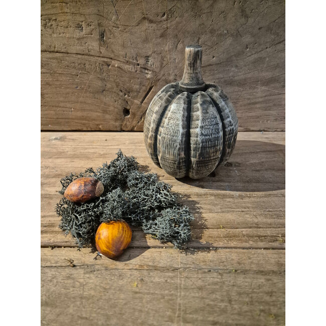 mix - pompoen rond hout - ca. 10 x 10 x 13 cm - grijs melee