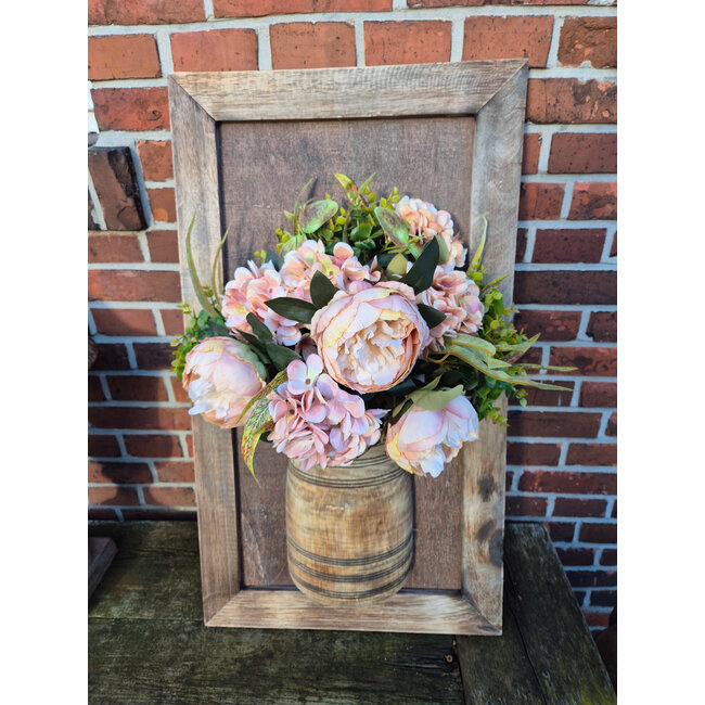 mix - Wandpaneel met vaas en houten lijst - ca. 45 x 78 cm - excl bloemen