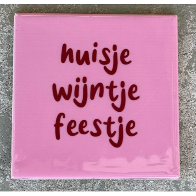 Tegeltje huisje wijntje feestje - 10,5x10,5x0,5cm