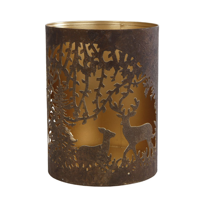 # Theelichthouder "Hert" L antiek bruin metaal 10x10x13cm