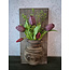 Wandpaneel met vaas zonder houten lijst - 20 x 30 cm incl boeket - paarse tulp
